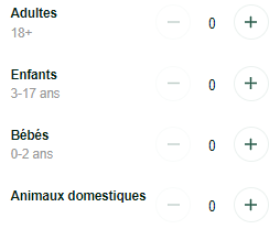Sous Entreprise de voyage, vous pouvez indiquer à quoi ressemble la composition de votre groupe. Vous pouvez également indiquer si vous souhaitez venir avec un animal de compagnie ou non.